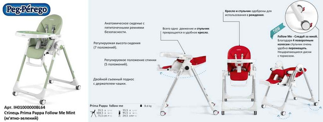 Характеристики Peg-Perego стула Prima Pappa Follow Me