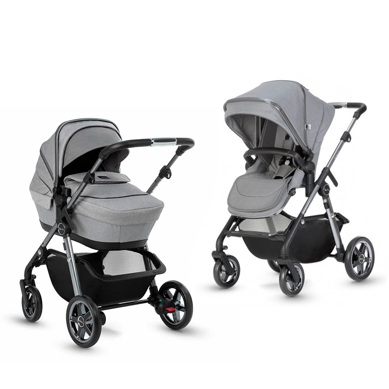 Шасі з полегшеного алюмінію знижує вагу коляски 2 в 1, а унікальна чотирирівнева підвіска гарантує плавне пересування будь-якою дорогою. Поворотні передні колеса з можливістю блокування. Внизу розміщений місткий кошик для покупок. Регульована за висотою ергономічна ручка керування підійде батькам різного зросту.
