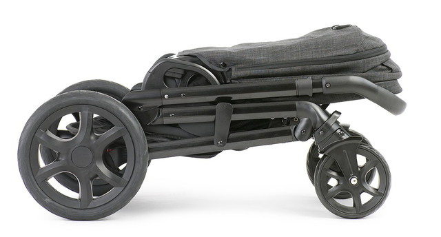 Дуже легко складається шасі з прогулянковим блоком — лише натиснувши дві кнопки з боків ручки коляска компактно складається.
